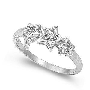 Rhodium Plated Sterling Silver 6mm Stars Clear CZ Ring