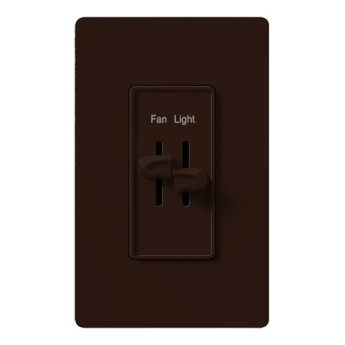Lutron , Lutron S2-LFSQH Skylark Dual Light/Quiet Fan Al Fan Control (Left) Slide up to On/Increase Speed, Downto Decrease/Off 3 Quiet Fan Speeds for Increased Comfort For use with only One Ceiling Paddle Fan Dimmer (Right) Slide up to On/Brighten, Down to Dim/Off Clamshell Package Wall Plate Not included 3-Speed Quiet Control Finish: Brown Type: Gloss Single Pole Slide to Off 1 Gang