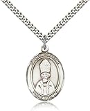Bliss , Genuine IceCarats Designer Jewelry Gift Sterling Silver St. Anselm Of Canterbury Pendant 1 X 3/4 Inch With 24 Inch Stainless Silver Heavy Curb Chain. Made In Usa.