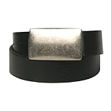 - Mens Genuine Leather Black 1.6 Inch Wide Rectangular Plaque Fashion Belt