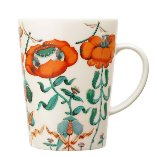 Iittala , A large cup of coffee never looked so good. Designed for iittala by Klaus Haapaniemi, this new set features a cheerful pattern filled with dragonflies hovering over a multitude of blooming orange petals. Waking up is a breeze with this cheerful patterned 12 oz. Korento Mug. The Korento dishware is designed to coordinate with iittala Teema dishware.